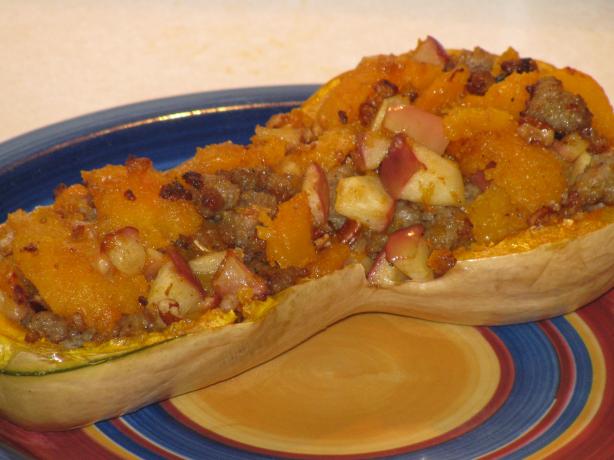 13 Lightly mix the squash pulp into the sausage mixture breaking up squash as little as possible.